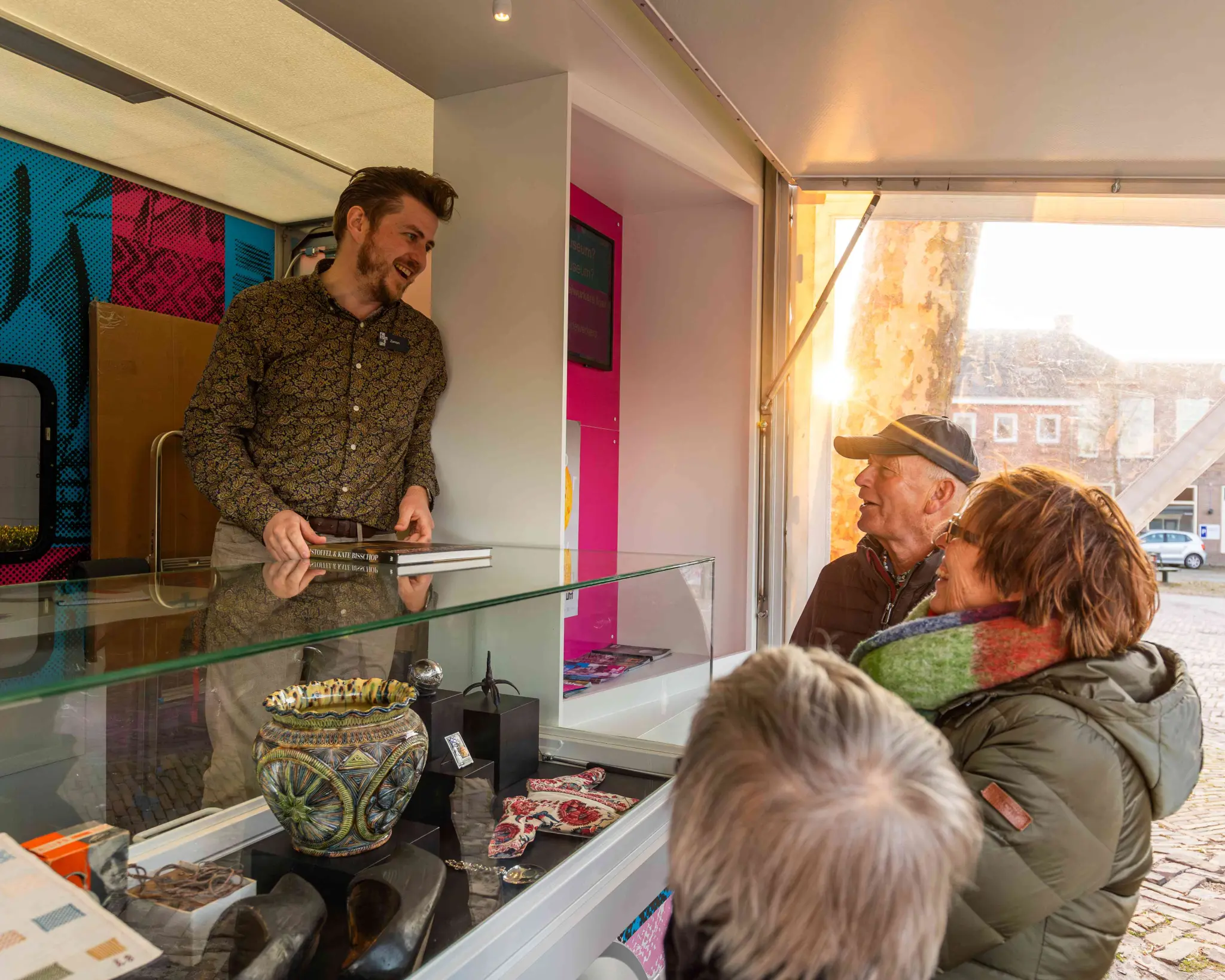 Ook de keuze voor échte museumstukken is bewust. “Je voelt als museum altijd de verantwoordelijkheid om te bewaren,” zegt Annemarie. “Het liefst laat je objecten, soms heel oud en fragiel, daarom op hun plek. Maar een museum heeft óók een deelfunctie. Onze collectie is van iedereen, en daar hoort bij dat je die soms juist naar buiten brengt.” Voor elk object onderzoekt het team zorgvuldig of en hoe het veilig mee kan, in nauwe samenwerking met collectie- en conservatiemedewerkers. Hoewel dit soms intern nog spannend wordt gevonden, ziet Jacqueline dagelijks wat het oplevert. “Het gevoel dat mensen krijgen als ze weten: dit is een écht object uit onze geschiedenis, dat is niet te vergelijken met een replica. Je ziet mensen letterlijk dichterbij komen.”